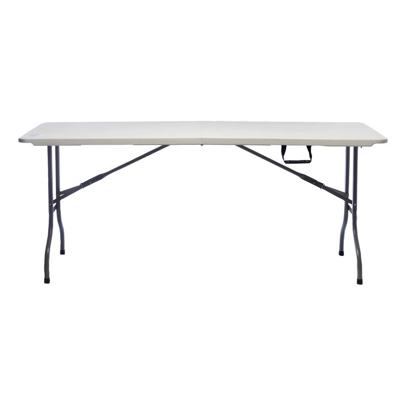Excelente mesa plegable construida en material ultrarresistente. Para quincho, camping, jardín, catering u oficina.