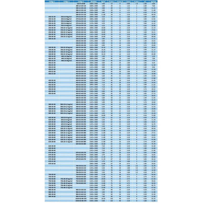 MEDIDAS DE HOJA: - 1.250 X 2.500 MM.