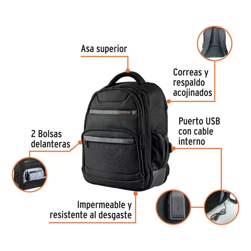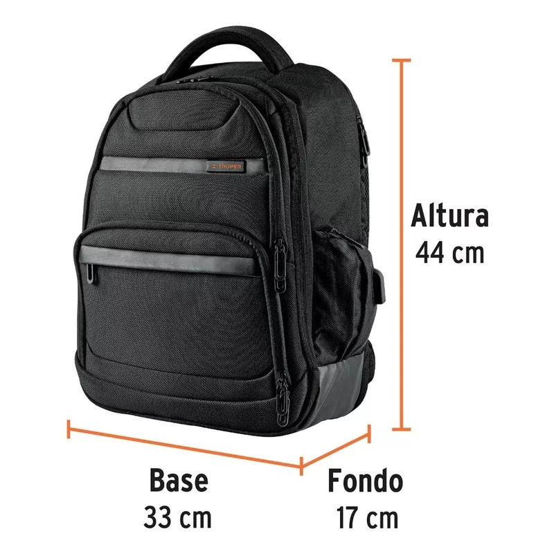 Mochila Porta Laptop Negra Truper 60179 Color Negro