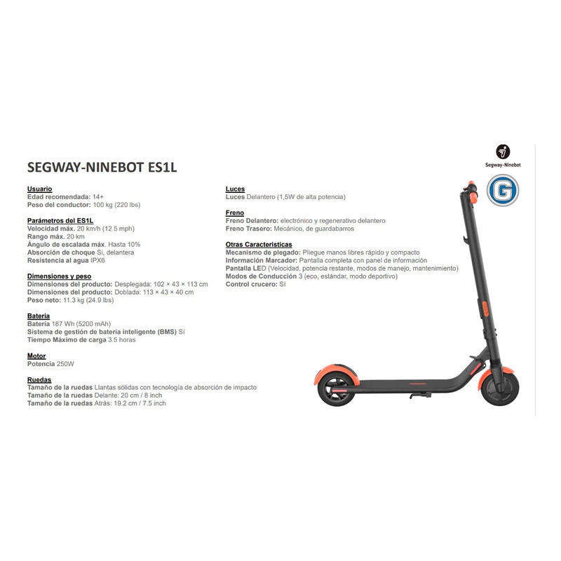 - Modelo: Ninebot Kickscooter ES1L