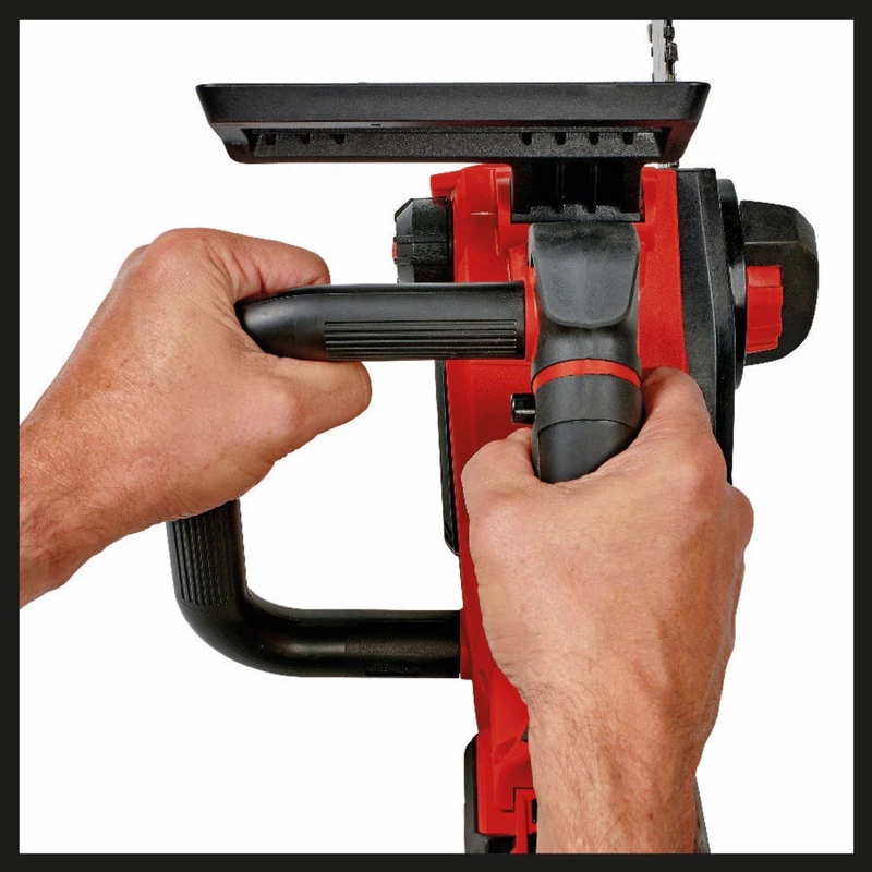 La motosierra a una mano con batería FORTEXXA 18/20 de Einhell es un potente miembro de la flexible familia Power X-Change. El ayudante manual, ligero y ergonómico al desramar se acciona por un motor sin escobillas de Einhell, un motor eléctrico sin escobillas, que es más duradero y potente que un motor con escobillas de carbono convencional. Junto con la espada y cadena de calidad OREGON, las ramas gruesas apenas tienen algo que oponer a la FORTEXXA. La FORTEXXA dispone de varios mecanismos de seguridad: una protección de punta para evitar el retroceso, protección antirretroceso con freno inmediato de la cadena y un perno colector de cadena. Una tensión de cadena ajustable sin herramientas y un cambio de cadena sencillo facilitan la manipulación. La lubricación automática de cadena aporta la gran abertura de introducción de aceite para el cuidado sencillo. El robusto tope de garras está hecho de metal, el asa ergonómica está equipada con agarre suave para el sostén firme y seguro. Para funcionar se necesita 1 batería de 18 V de la serie Power X-Change, para resultados óptimos se recomienda una batería de 2,5 Ah o más. La innovadora serie Power X-Change sobresale por su gran potencia y máxima flexibilidad: las baterías de iones de litio se pueden intercambiar entre los equipos de esta serie de Einhell. Cada sistema de baterías puede utilizarse en cada equipo Power X-Change. El envío se realiza sin batería ni cargador, estos son adquiribles por separado, por ejemplo, como un práctico set para principiantes. ADVERTENCIA: Esta motosierra solo puede ser usada por trabajadores expertos en el cuidado de árboles. El incumplimiento de las instrucciones e indicaciones de seguridad puede provocar lesiones graves.