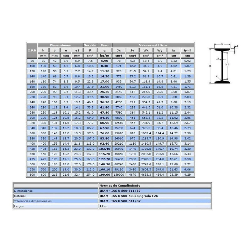 USO: Se utilizan generalmente como vigas o columnas. Para consultar que Perfil deben utilizar es necesario que nos indiquen el LARGO del mismo y el PESO que debe soportar.