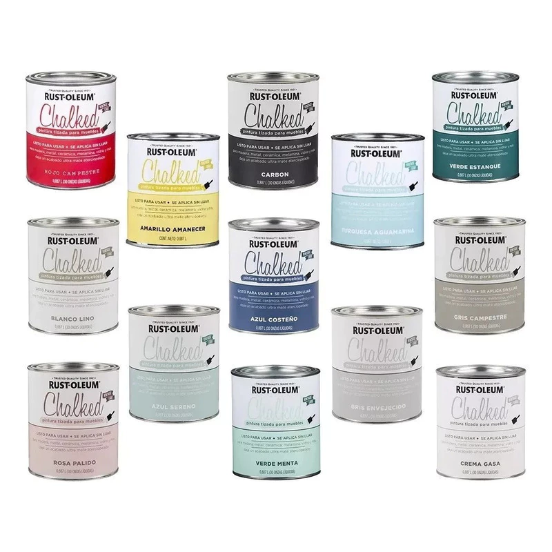Rust-Oleum Chalked Pintura Tizada para Muebles es una pintura, base agua, muy fácil de usar que deja un acabado tizado ultra mate y posee una excelente adherencia y cobertura. Es ideal para transformar o rejuvenecer muebles y objetos de decoración. Se puede dejar como acabado final o desgastar para darle un look vintage al objeto pintado.