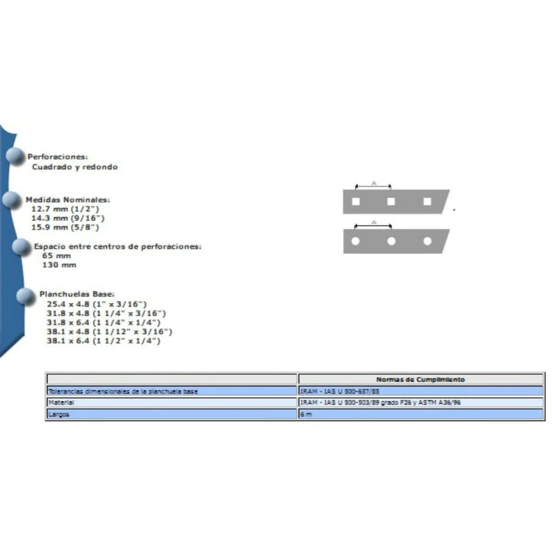 HIERRO PLANCHUELA LAMINADA EN CALIENTE CALIDAD F-24 / F-26 PERFORADA PARA BARRA REDONDA / CUADRADA DE 1/2 PULGADA PARA REJAS