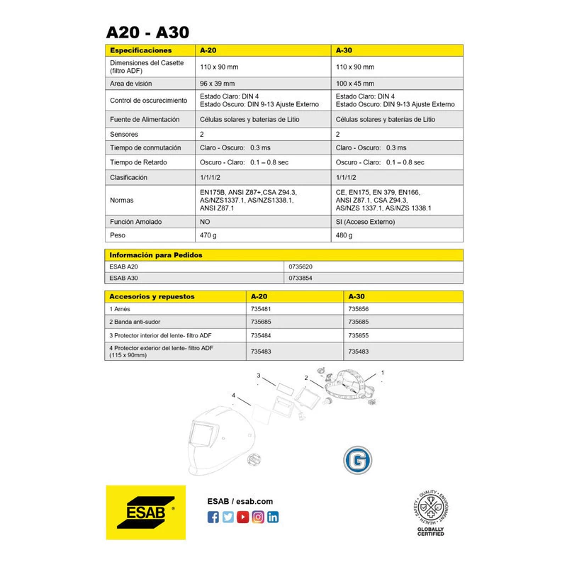 * PROTECTOR INTERIOR CARETA MASCARA FOTOSENSIBLE ESAB A-20 EN BOLSA DE 10 UN. *