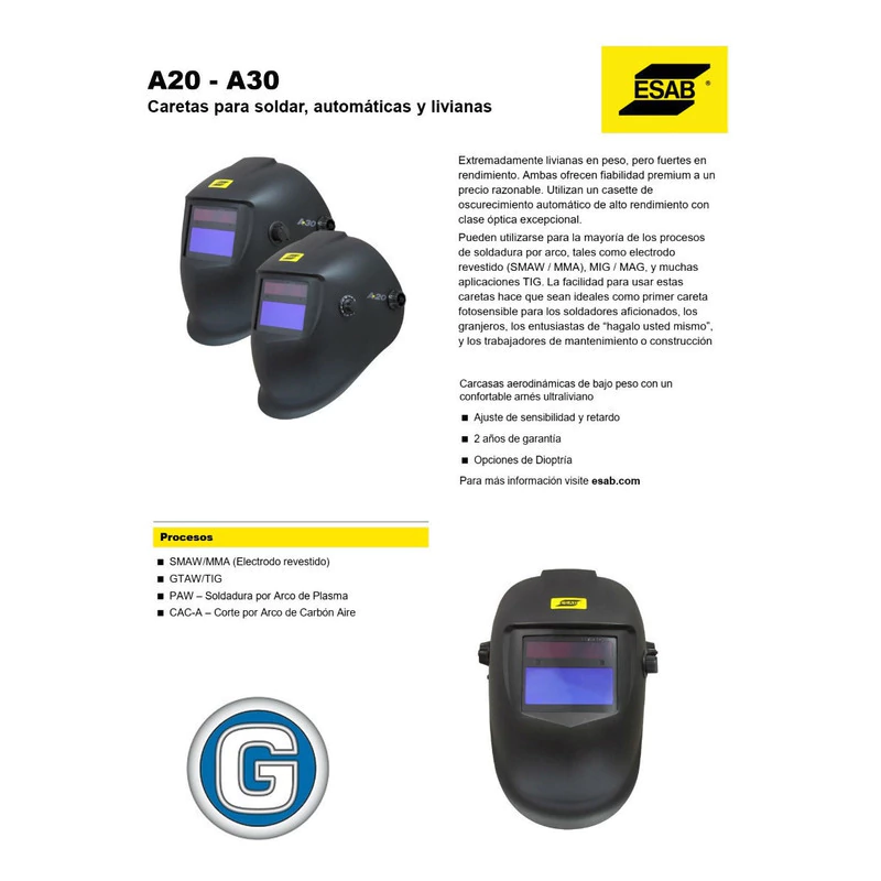 * PROTECTOR INTERIOR CARETA MASCARA FOTOSENSIBLE ESAB A-20 EN BOLSA DE 10 UN. *