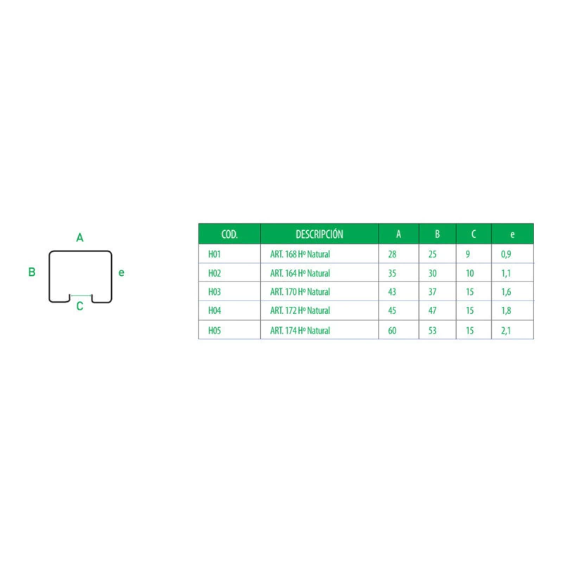 NO PODRAN COMPRARSE MÁS DE 6 PERFILES DE ESTA MEDIDA EN EL MISMO ENVÍO YA QUE SUPERAN LOS 30 KG. PERMITIDOS POR EL CORREO.