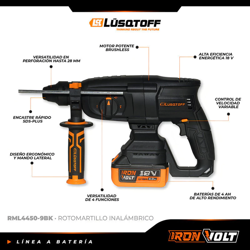 Rotomartillo Percutor Inalámbrico 18v Lusqtoff 2 Bat Rml4450