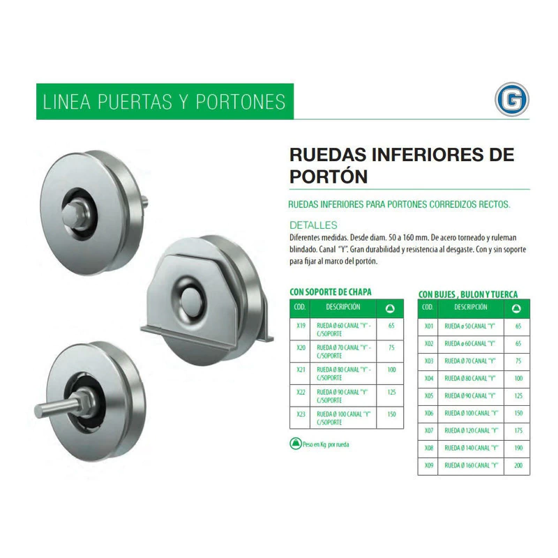 RUEDA DE ACERO CANAL CUADRADO DE Ø 70 MM. PARA PORTON CORREDIZO PARA COLOCAR SOBRE PLANCHUELA DE 4,75 MM. DE ESPESOR.