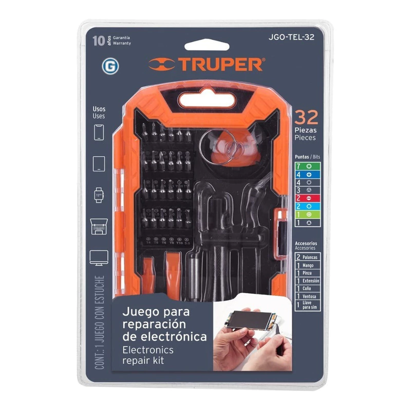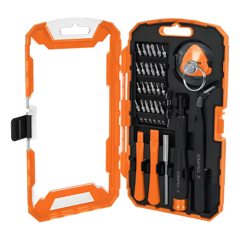 • Juego de 32 piezas para reparación de electrónica y smartphones