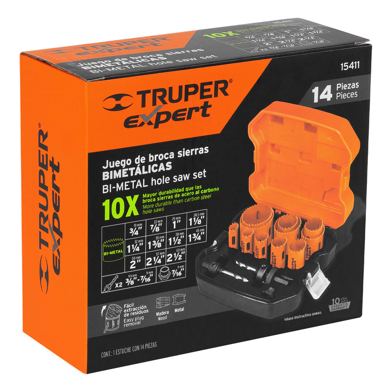Set Juego 14 Piezas Mechas Sierra Copa Broca Truper Estuche