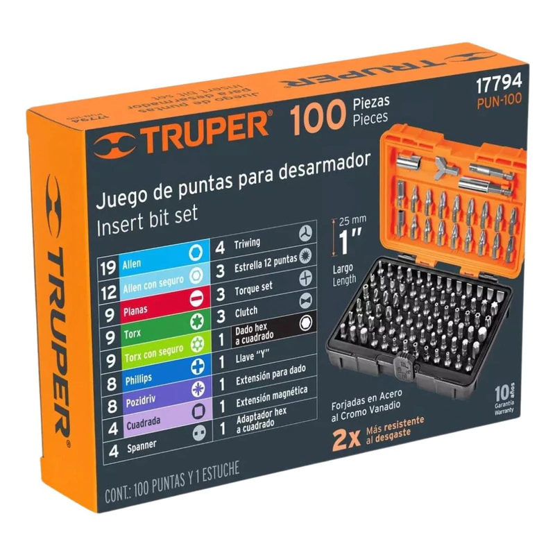 Set Kit Juego Puntas Ph Torx 100 Piezas Con Maletín Truper