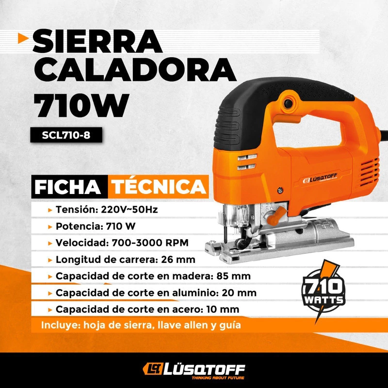 Con la sierra caladora Lüsqtoff podrás realizar cortes precisos, sobre todo en curvas cerradas. Fácil de manipular y de un material muy resistente, podrás realizar trabajos en varios materiales sin dificultades.