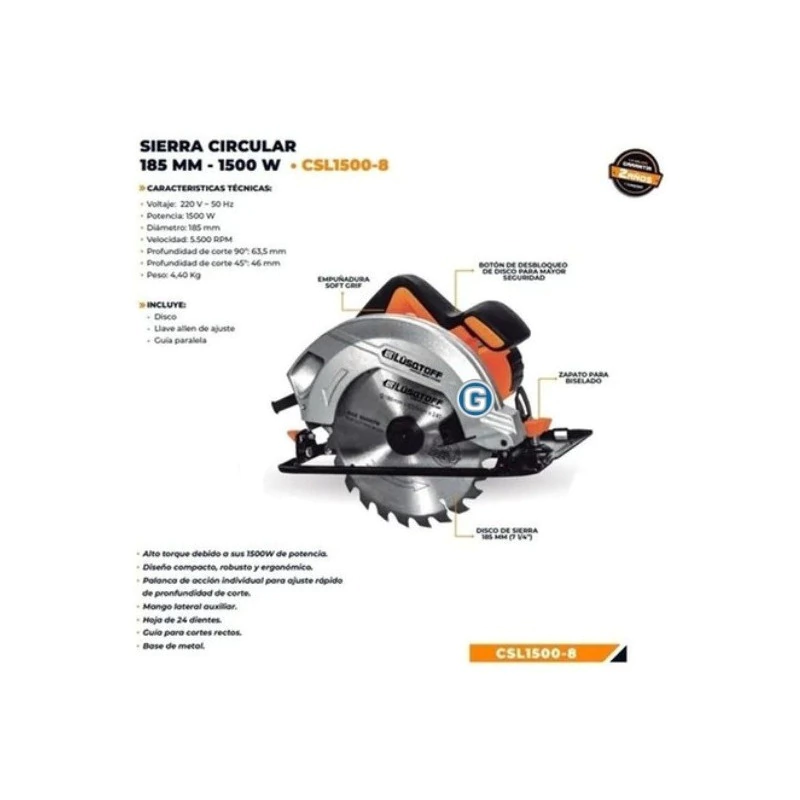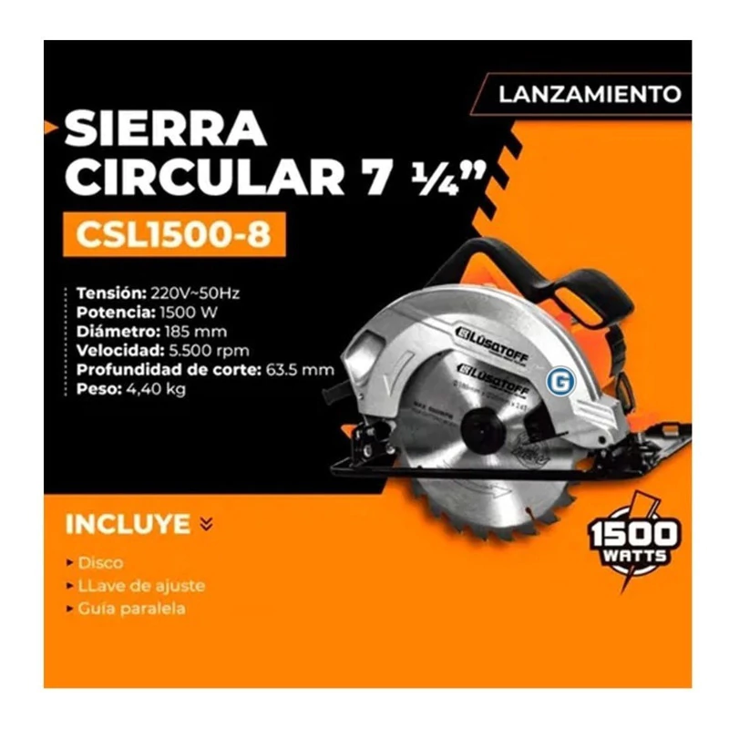 Sierra Circular Lusqtoff 1500w 185mm 7 1/4 Guía Y Disco