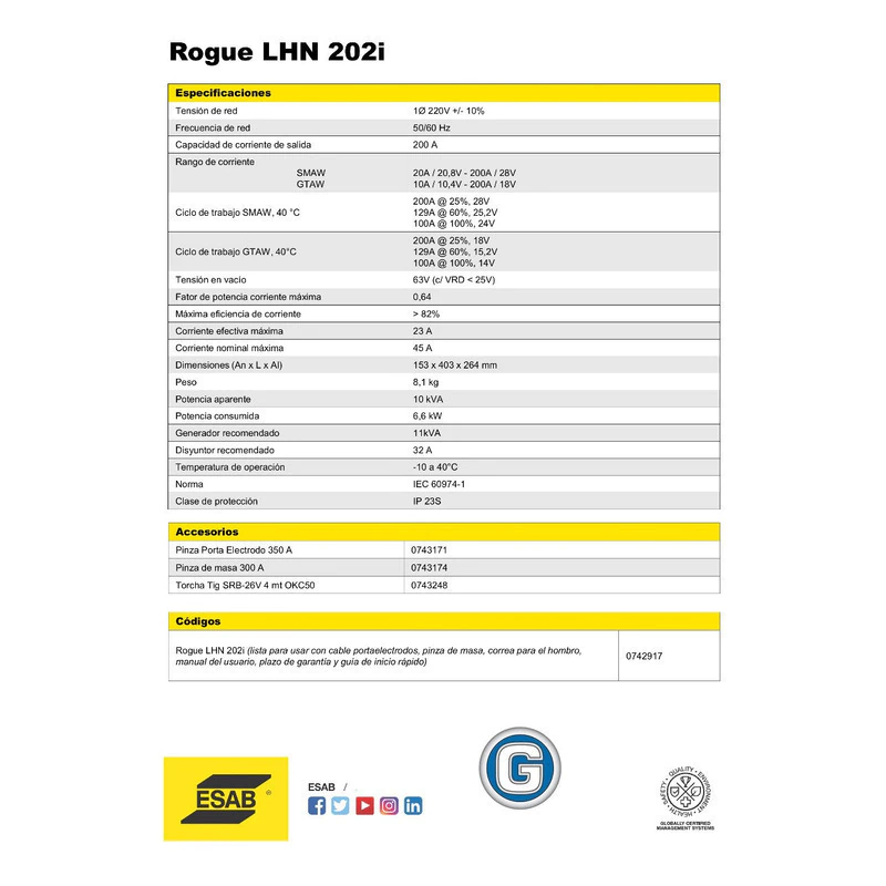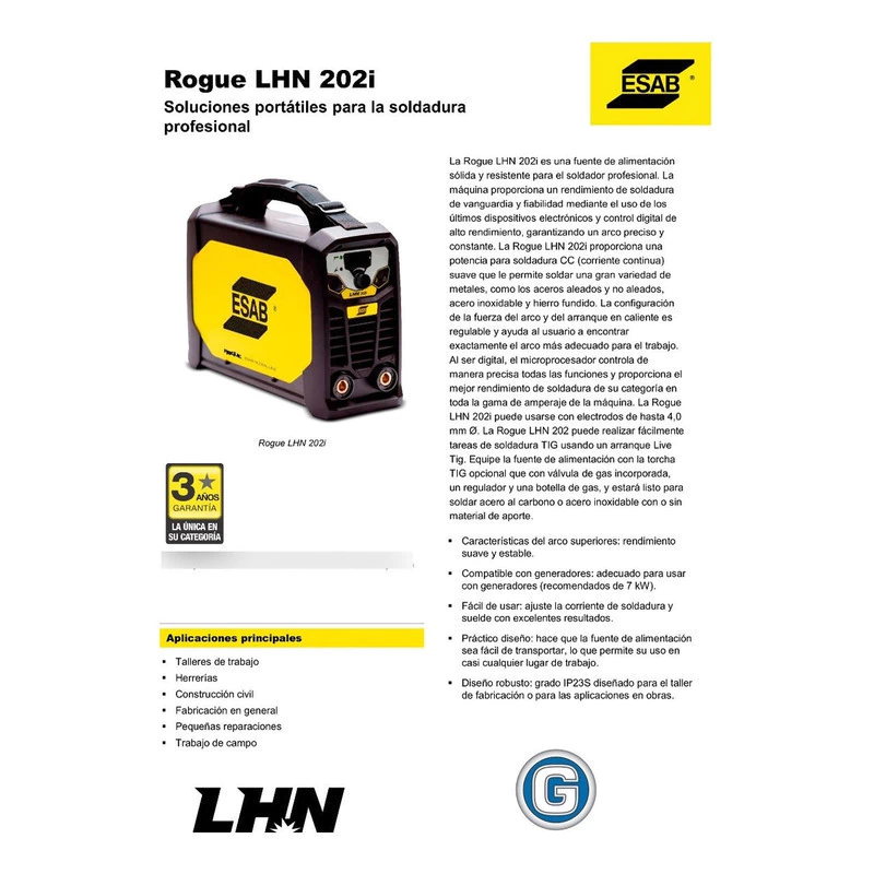 ESAB LHN 202i es ideal para uso doméstico y profesional. Su calidad brinda una fusión precisa, para que puedas soldar diversos materiales, aplicando calor y proporcionando mayor resistencia.