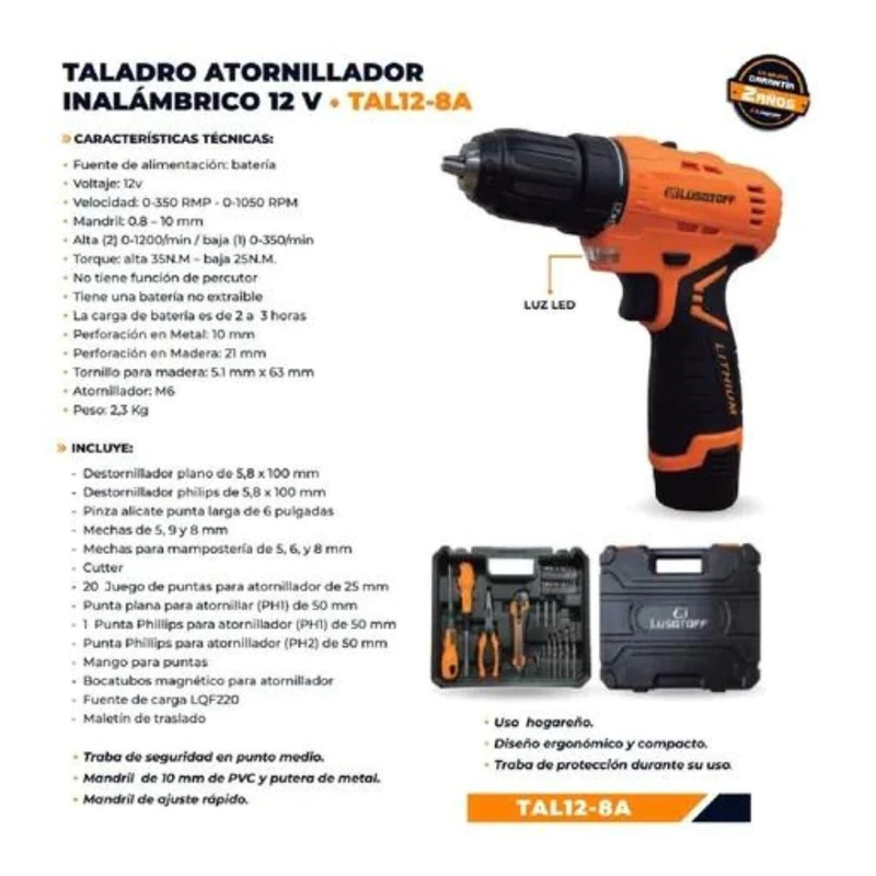 Taladro Atornillador 12V Inalámbrico LUSQTOFF modelo TAL12-8A
