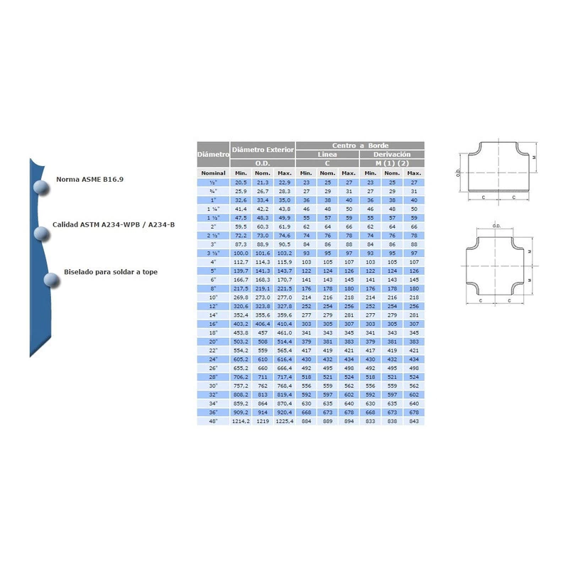 TE NORMAL DE ACERO AL CARBONO DE Ø 3" STD PARA SOLDAR A TOPE BW