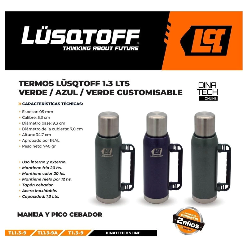 Termo Acero Inox 1.3 Litros Lusqtoff Azul Frio Calor Manija