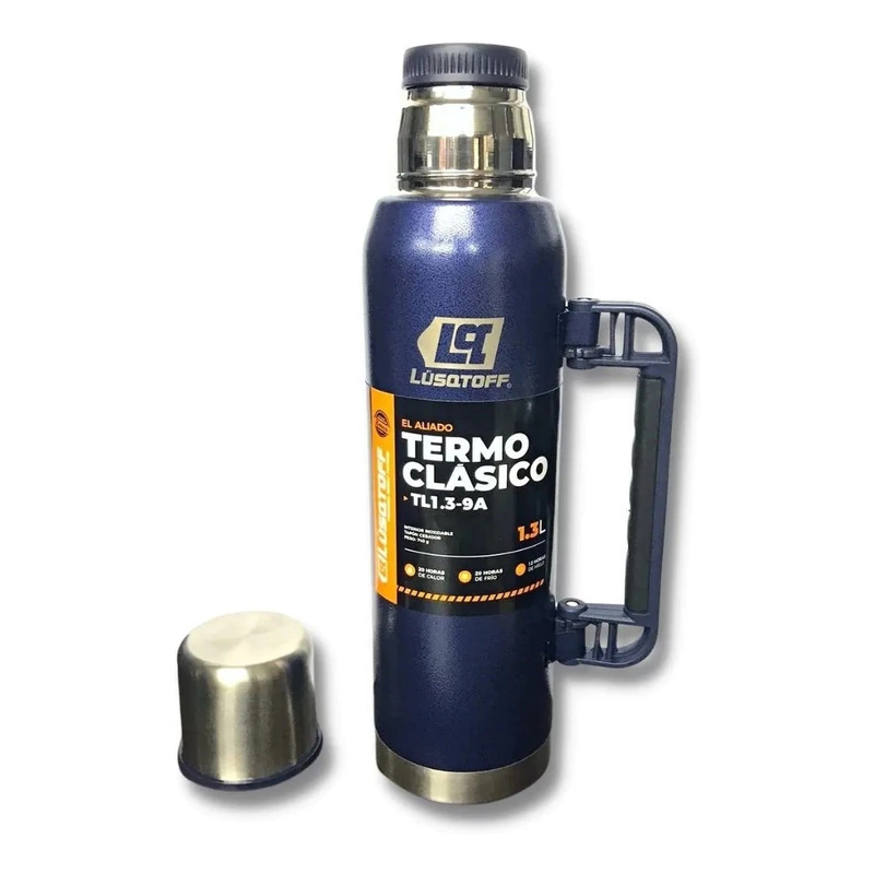 Termo Acero Inox 1.3 Litros Lusqtoff Azul Frio Calor Manija