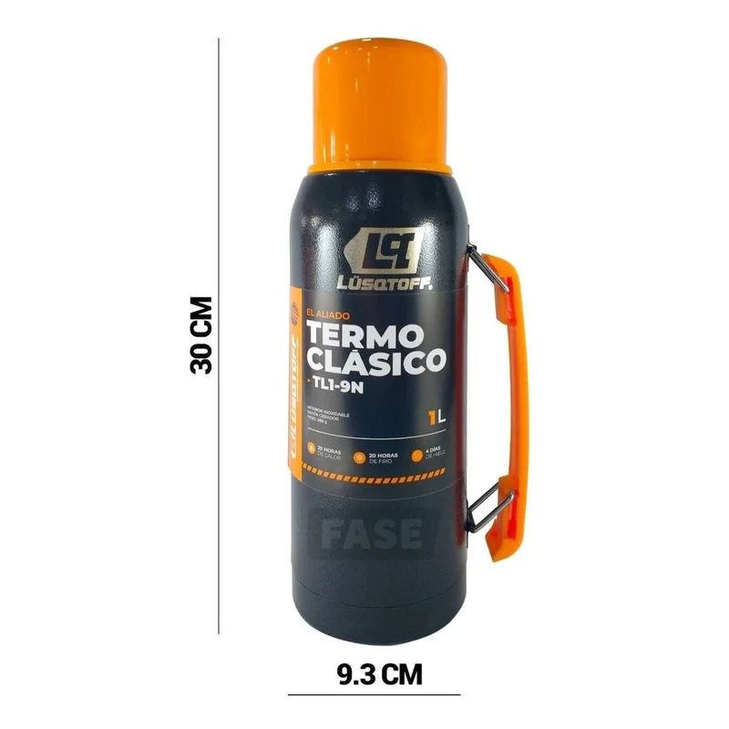 Termo Acero Inox 1 Litro Lusqtoff Negro Frio Calor Manija