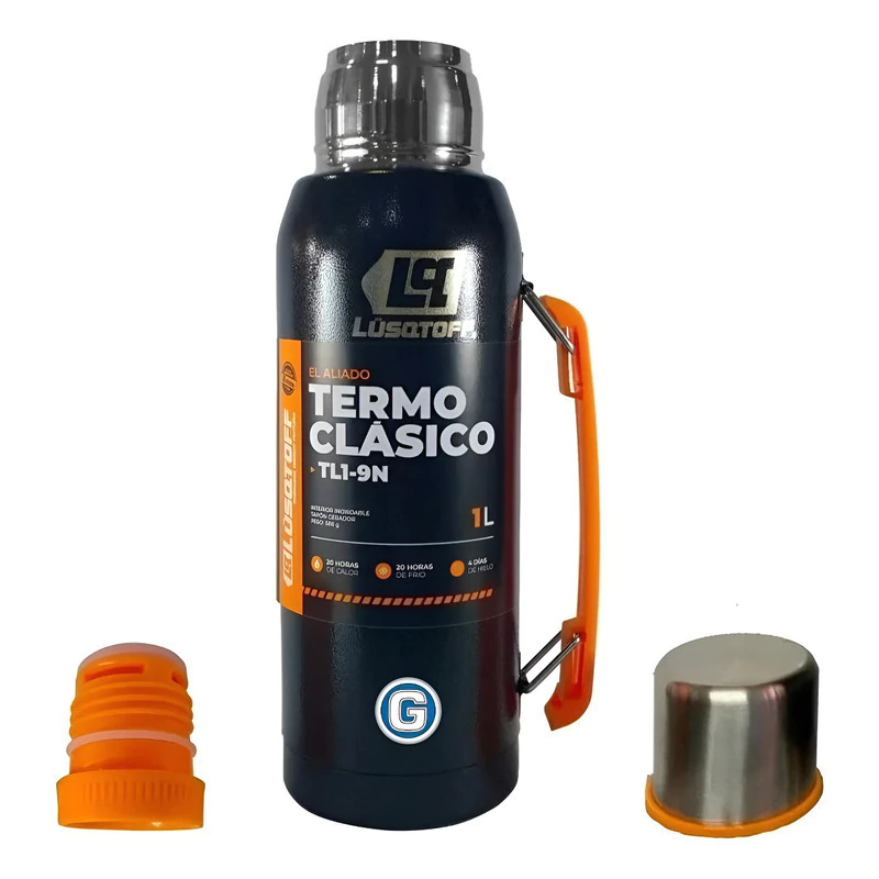 Termo Acero Inox 1 Litro Lusqtoff Negro Frio Calor Manija
