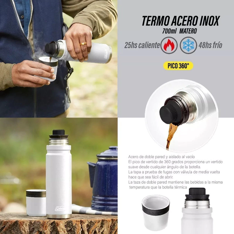 TERMO MATERO COLEMAN ACERO INOXIDABLE WHITE TRUFFLE BLANCO 700 ML