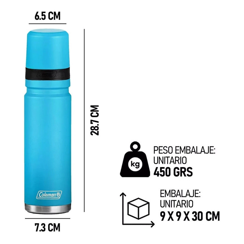 TERMO MATERO COLEMAN ACERO INOXIDABLE TURQUESA CELESTE CARIBBEAN SEA 700 ML