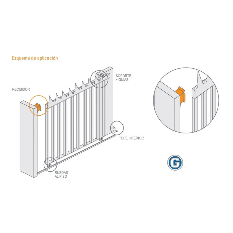 1 (UN) Tope recibidor superior para Portón Corredizo de 80 x 85 mm, para portón corredizo con marco fabricado con caño de 80 mm.