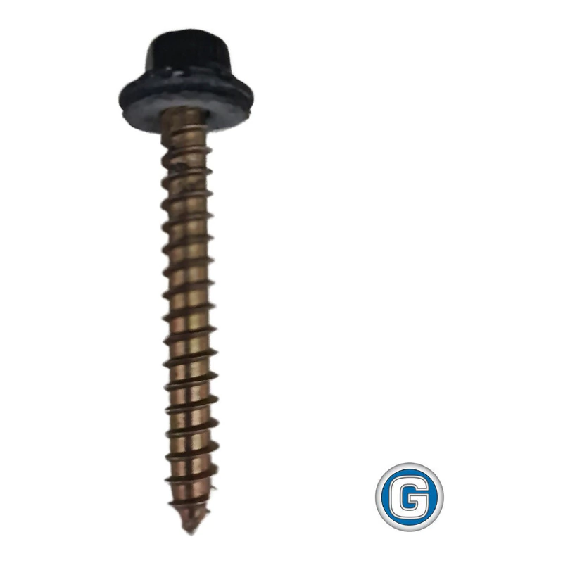 BOLSA DE 100 UNIDADES DE TORNILLOS AUTOPERFORANTES CABEZA HEXAGONAL PUNTA AGUJA (PARA ATORNILLAR EN TIRANTES DE MADERA O ALFAJIAS) CON CABEZA Y ARANDELA PINTADAS DE COLOR NEGRO. LAS ARANDELAS SON DE CHAPA CON GOMA VULCANIZADA.