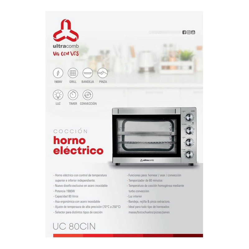 Horno eléctrico con control de temperatura superior e inferior independiente.