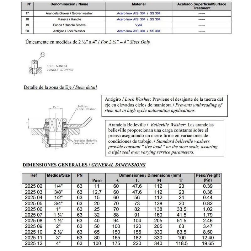 PARA MAYOR INFORMACIÓN DE LA VÁLVULA CONSULTE EN LAS IMÁGENES Y ENCONTRARÁ LA HOJA DE DATOS DE LA MISMA.