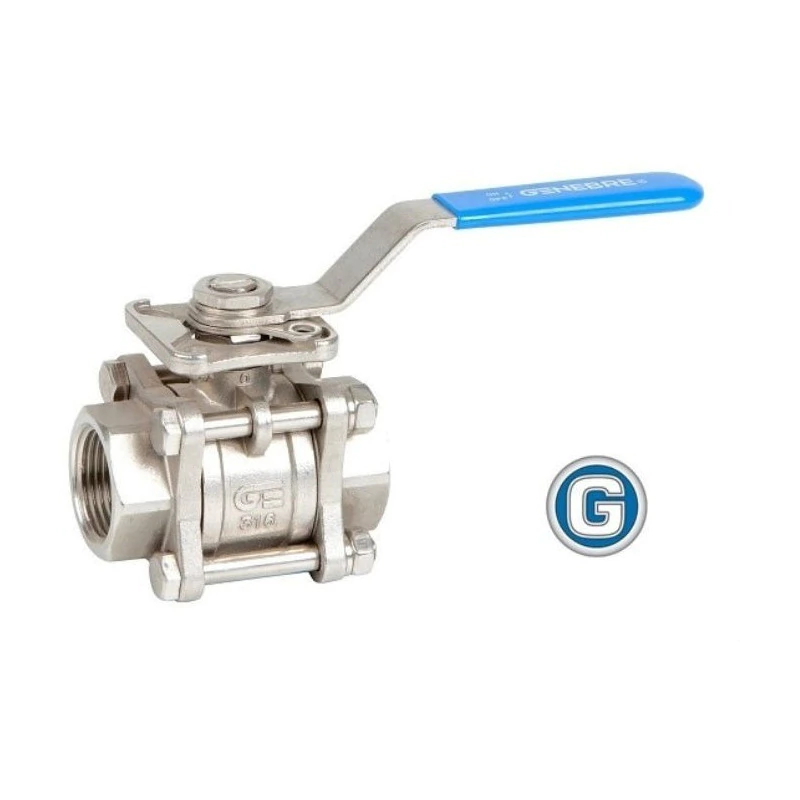 Válvula Esférica GENEBRE De Acero Inoxidable AISI 316 de Tres Cuerpos de Ø 1/2" Roscada BSPT