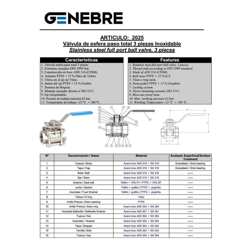 - Tipo de válvula: Esférica