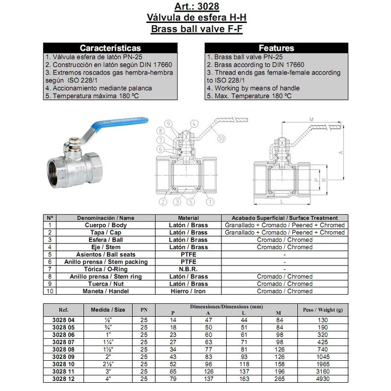 - Tipo de válvula: Esférica
