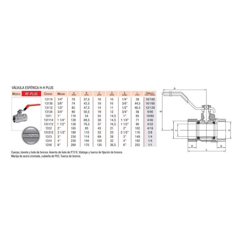 Válvula Esférica VALFORTE De Bronce Cromado de Ø 1/2" Roscada BSP