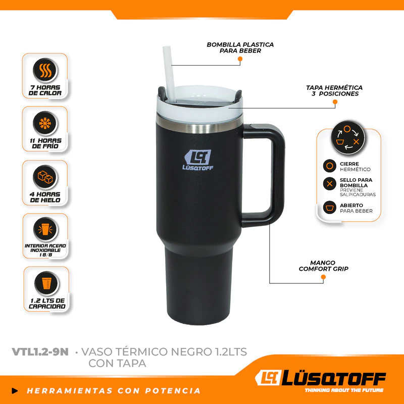 Vaso Térmico Lusqtoff 1.2 Lt Negro Acero Inoxidable Stanl