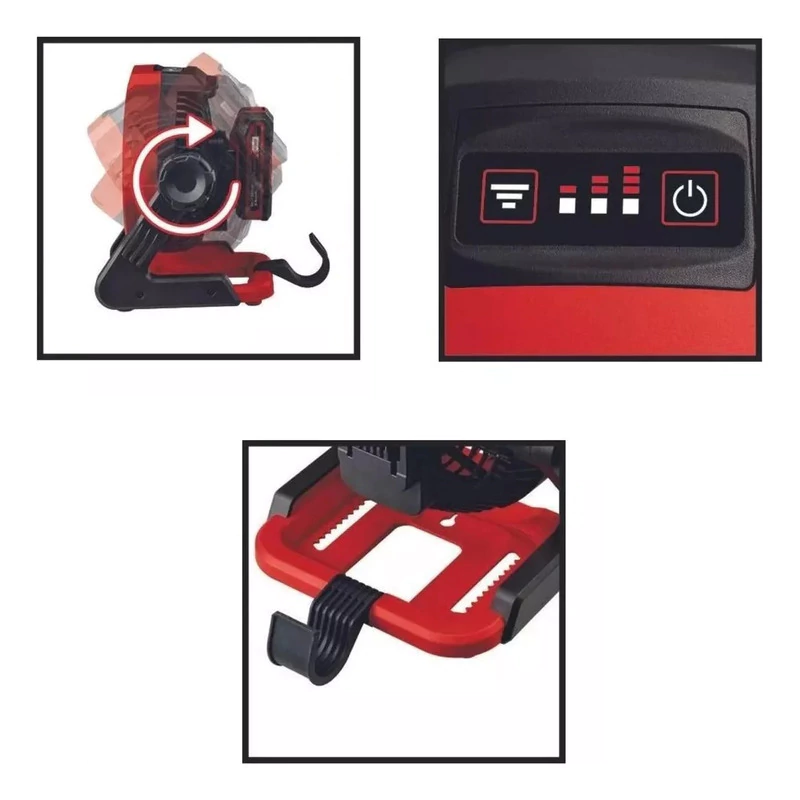 El ventilador con batería GE-CF 18/2200 Li de Einhell trae no solo aire fresco: El equipo sin cables lo hace posible y puede usarse en cualquier lugar y se ocupa del suministro de aire o ideal distribución y propagación de corrientes de aire.
