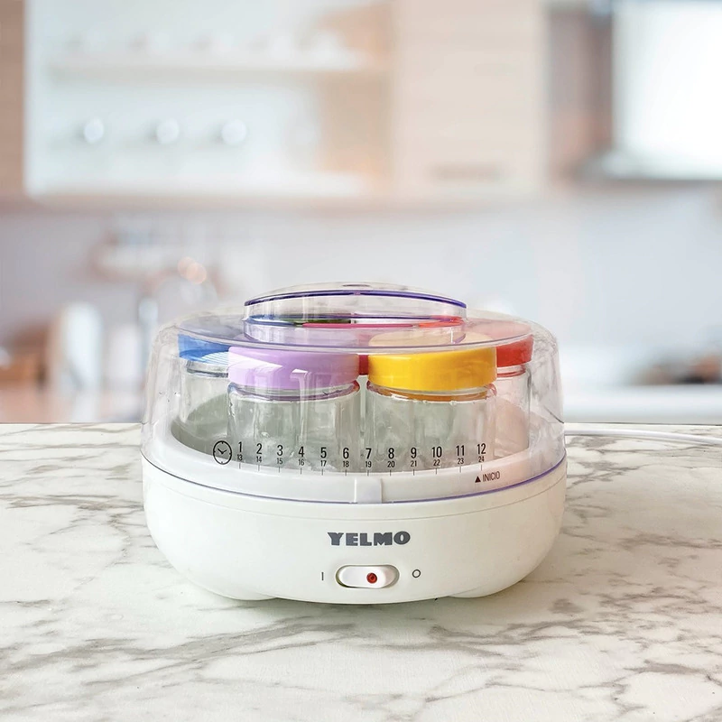 - Prepara fácilmente y de una sola operación hasta 1,1 litros de yogur.